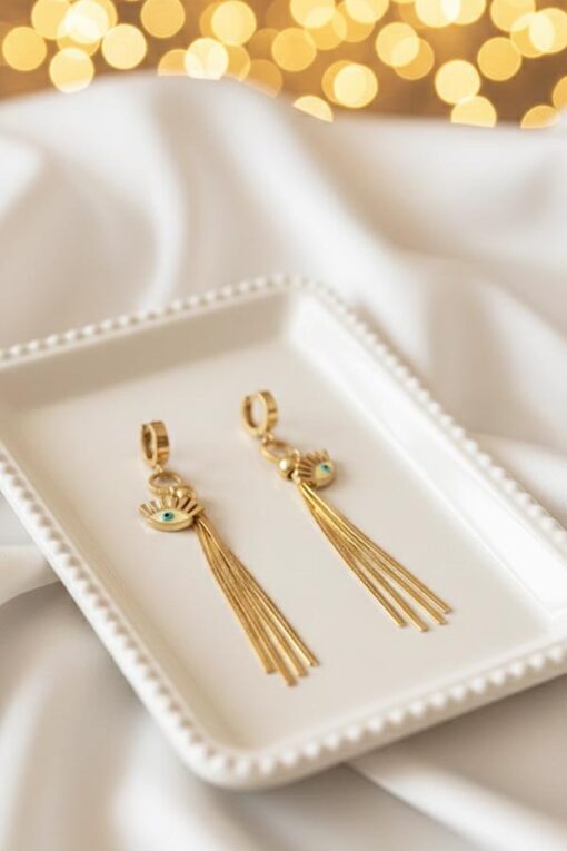 Golden Evil Eye Tassel Earrings – Statement Protection