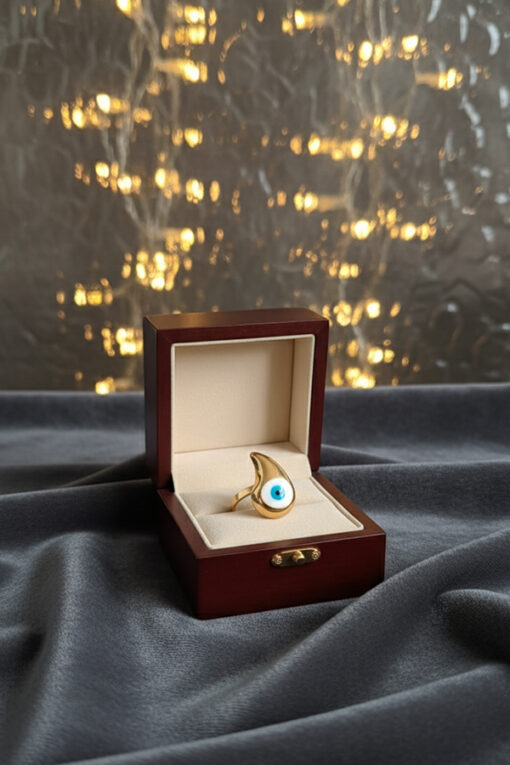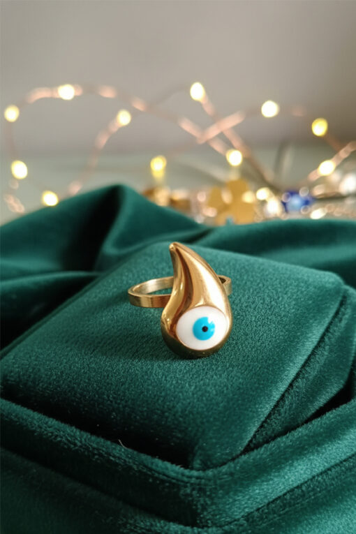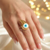 Golden Flame Evil Eye Ring – Symbol of Strength and Protection