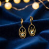 Golden Evil Eye Hoop Earrings – Elegant Black Enamel Protection Charm