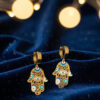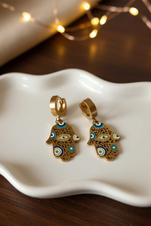 Golden Hamsa Evil Eye Earrings – Symbol of Protection & Positive Energy