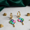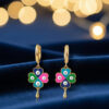 Golden Multicolor Clover Evil Eye Hoop Earrings – Vibrant Luck & Protection