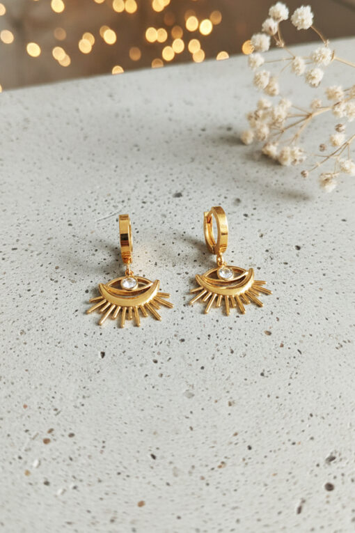 Golden Sun-Eye Dangle Earrings – Elegant Symbol of Radiance