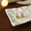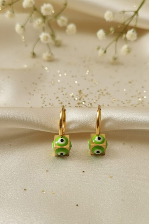 Green Cube Evil Eye Hoop Earrings – Modern Minimalist Protection Charm