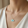 Luxurious Two-Tone Evil Eye Pendant Necklace with Pave Crystal Halo