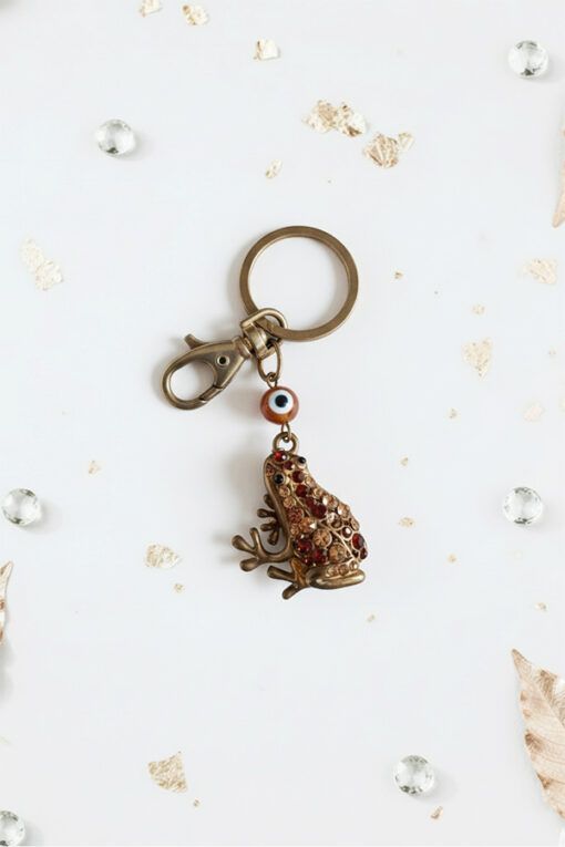 Lucky Jeweled Frog & Evil Eye Keychain in Antique Bronze