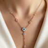 Luxurious Anti-Tarnish Gold Evil Eye Y-Necklace with Crystal Drops