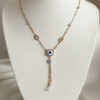 Chic Rose Gold Snake Chain Necklace with Multi-Colored Evil Eye Charms