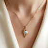 Luxurious Two-Tone Evil Eye Pendant Necklace with Pave Crystal Halo