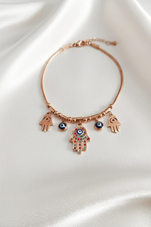 Luxurious Anti-Tarnish Rose Gold Hamsa & Evil Eye Charm Bracelet