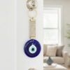 Traditional Turkish Blue Glass Evil Eye Wall Hanging with Beaded Chain