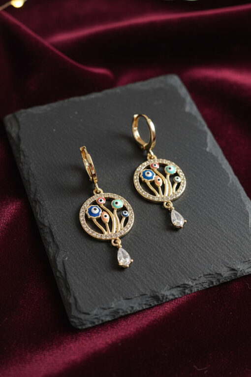 Luxury Multicolor Evil Eye Gold Drop Earrings with Crystal Accent