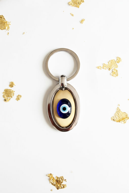 Luxury Oval Evil Eye Keychain with Mixed-Metal Inlay