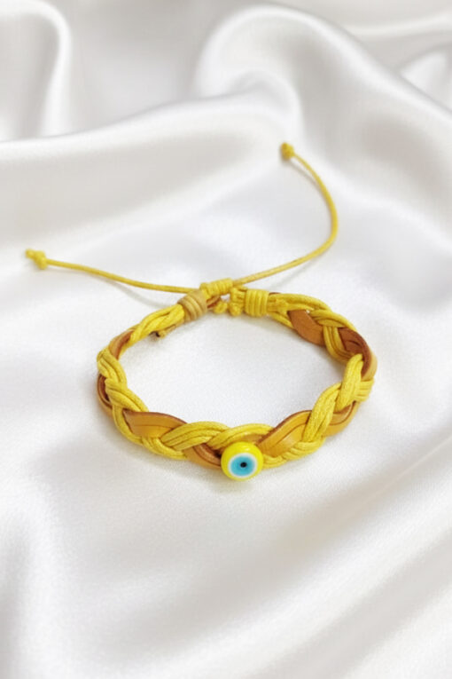 Men’s Vibrant Yellow Braided Leather Bracelet with Evil Eye Bead