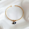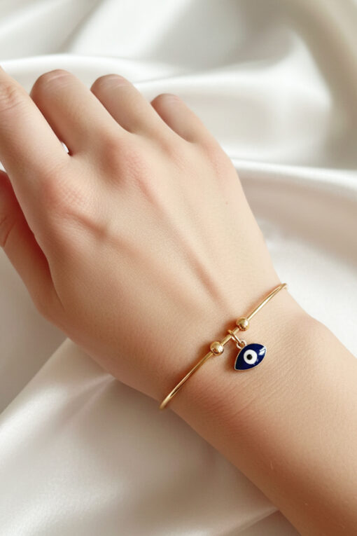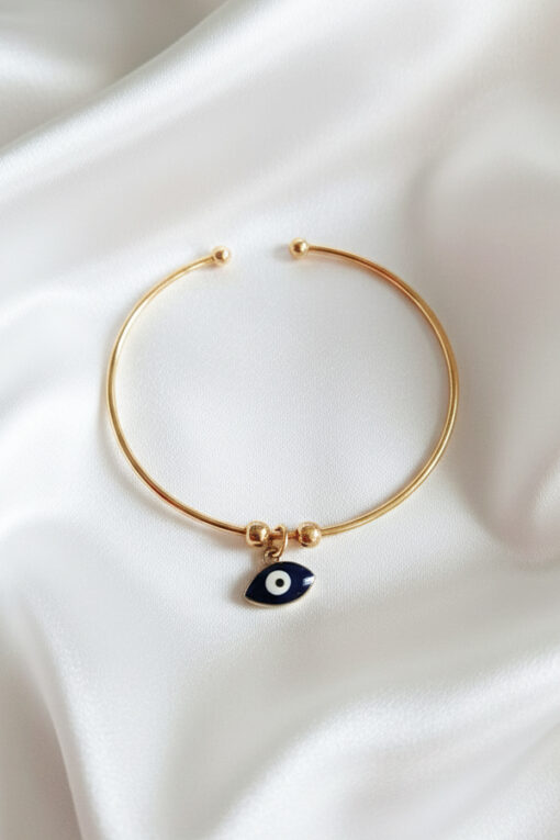 Minimalist Gold-Toned Bangle with Enamel Evil Eye Charm