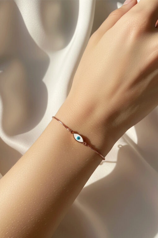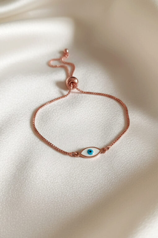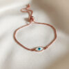 Minimalist Rose Gold Adjustable Slider Bracelet with Oval Evil Eye