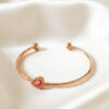 Minimalist Rose Gold Open Cuff Bangle with Red Heart Evil Eye Charm
