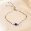 Minimalist Silver Adjustable Slider Bracelet with Classic Evil Eye