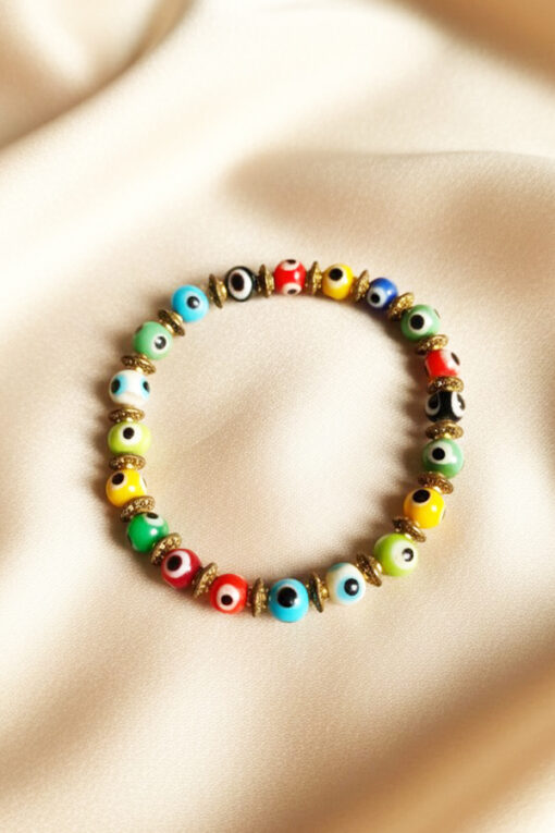 Tags: boho style bracelet, casual wear bracelet, colorful bead bracelet, designer style bracelet, everyday wear bracelet, evil eye protection jewelry, fashion evil eye accessory, gold accent bracelet, gold charm evil eye, good luck charm bracelet, modern evil eye design, multicolor evil eye bracelet, protective amulet bracelet, spiritual protection bracelet, stylish protection bracelet, symbolic protection jewelry, trendy wrist accessory, unisex beaded bracelet, vibrant color jewelry, women’s fashion bracelet