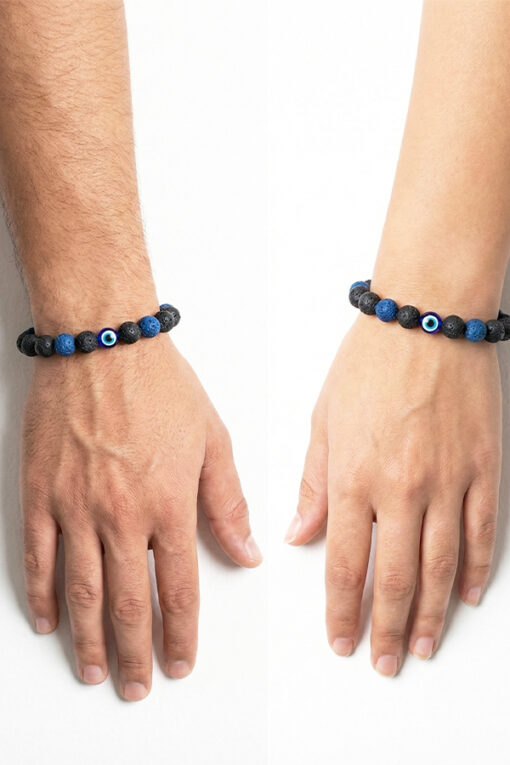 Elevate your daily style while embracing ancient spiritual protection with this Protective Harmony Lava Stone Bracelet. Designed for everyone, this unisex accessory creates a perfect balance between rugged natural textures and meaningful symbolism. These porous beads are naturally textured, making them perfect for use as a portable aromatherapy diffuser—simply add a drop of your favorite essential oil to carry a calming scent with you all day. Interspersed with striking cobalt blue accent beads, the design leads the eye to the centerpiece: a traditional Evil Eye charm. This historic talisman is believed to ward off negativity, jealousy, and bad luck, acting as a spiritual shield for the wearer. The durable elastic cord ensures a comfortable, slip-on fit for most wrist sizes, making it an ideal choice for both men and women. Whether you are looking for a meaningful gift for a partner (as a matching couple’s set) or seeking personal spiritual balance, this bracelet is a stylish reminder of positivity and strength.