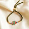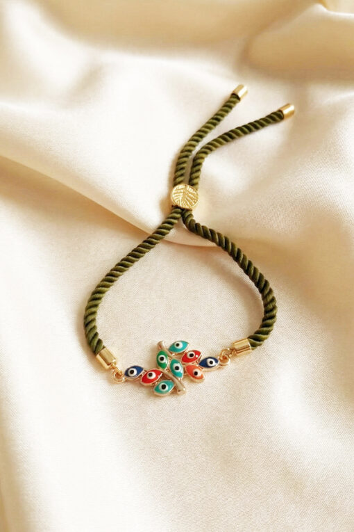 Olive Green Adjustable Cord Bracelet with Multi-Color Evil Eye Leaf Charm