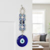 Traditional Turkish Blue Glass Evil Eye Wall Hanging with Beaded Chain