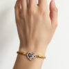 The focal point is a stunning gold-toned circular charm with a shimmering background of pavé crystals.