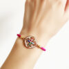 Pink Rope Adjustable Bracelet with Multi-Color Evil Eye Cross Charm
