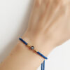 Adjustable Blue Cord Bracelet with Crystal-Studded Evil Eye Disc Charm
