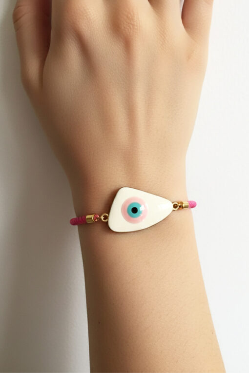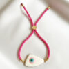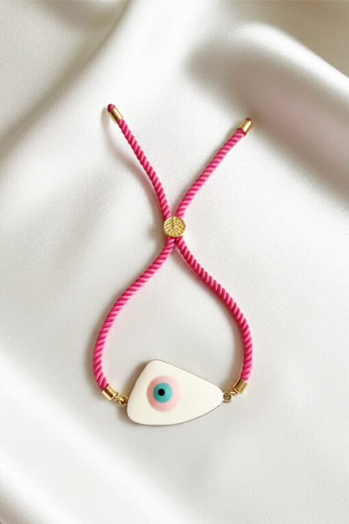 Pink Rope Adjustable Bracelet with White Enamel & Pink Evil Eye Charm
