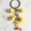 Playful Tweety Bird Keychain with Yellow Evil Eye Bead Accents