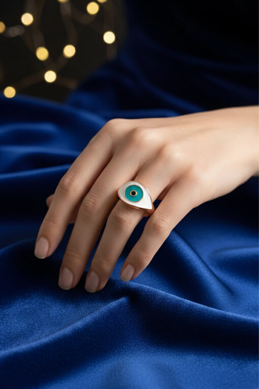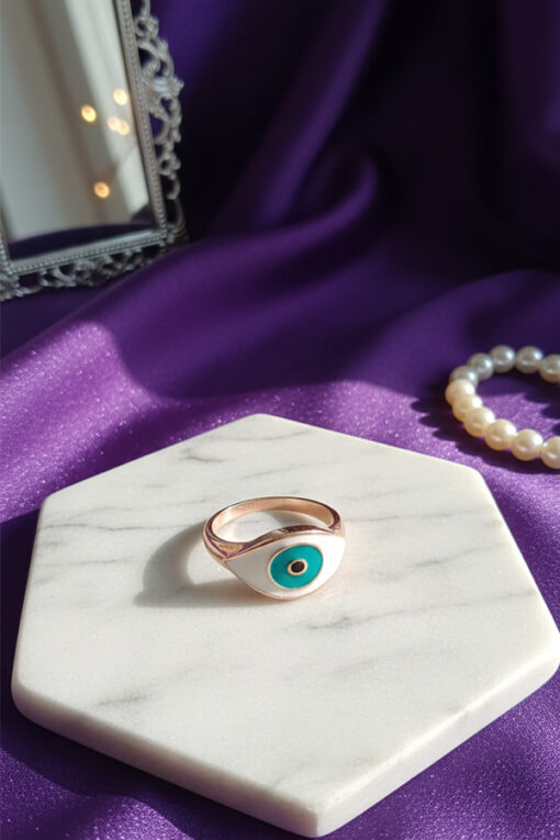 Premium Evil Eye Protection Ring – Rose Gold Plated with Turquoise Enamel