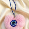 Pristine White Faux Fur Pom Pom & Glass Evil Eye Hanging Charm
