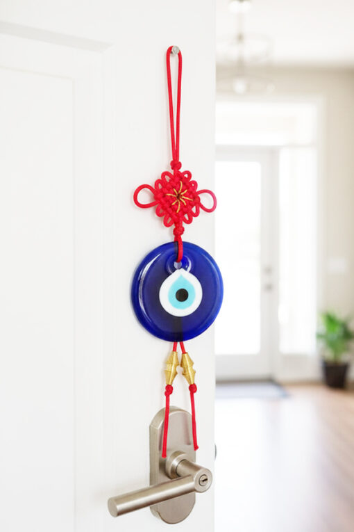 Protective Glass Evil Eye Hanging with Traditional Red Knot