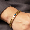 Executive Gold Anti-Tarnish Box-Link Bracelet with Central Evil Eye