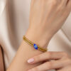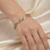 Delicate crystals line the band, adding a graceful shimmer that complements both day and evening looks. Its secure clasp ensures a comfortable fit, while the smooth, polished surface gives it a refined finish. Perfect for gifting or everyday wear, this Evil Eye Bangle embodies beauty, belief, and balance.