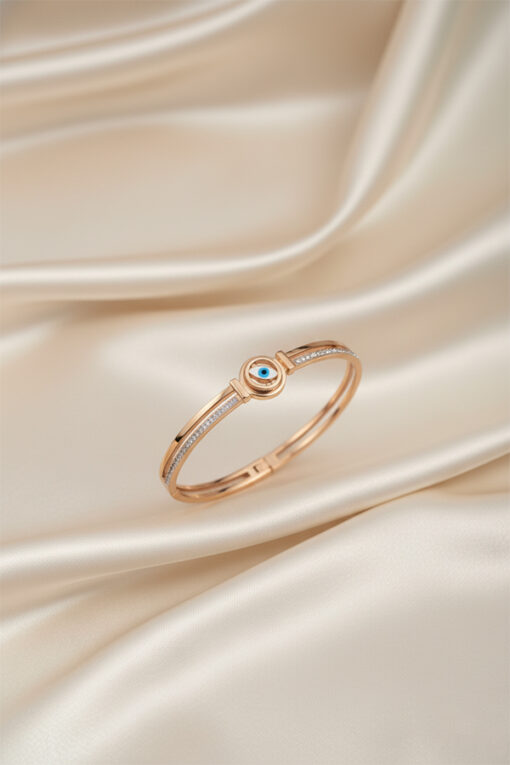 Rose Gold Evil Eye Bangle with Crystal Accents
