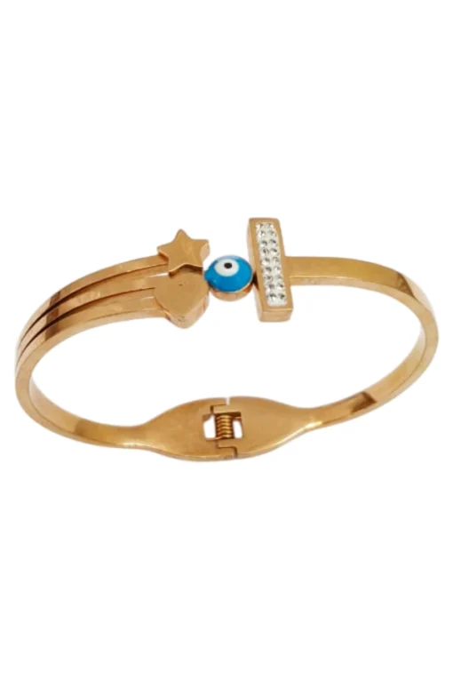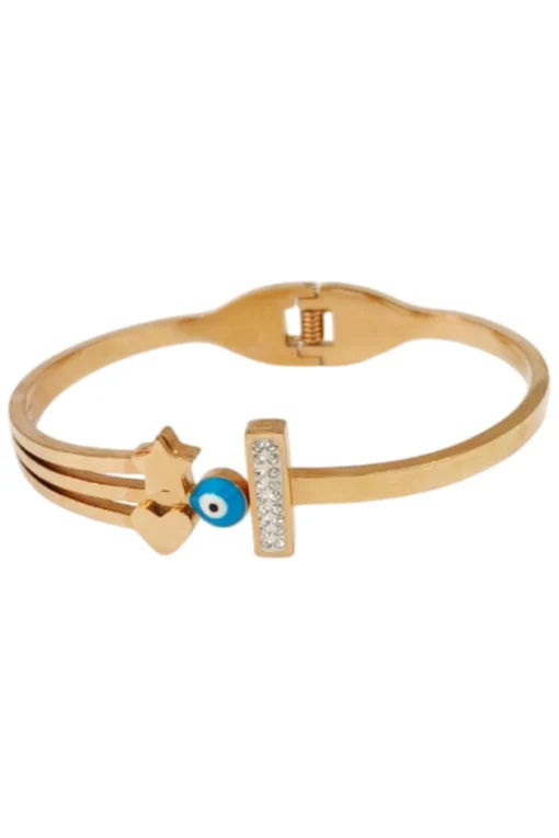 Rose Gold Evil Eye Bangle with Star & Crystal Bar Design