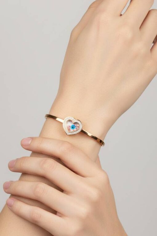 Golden Dual Heart Evil Eye Bangle – Sparkling Love & Protection