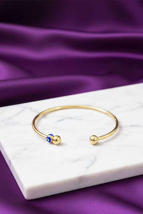 Golden Evil Eye Wave Bangle – Elegant Protection & Modern Charm