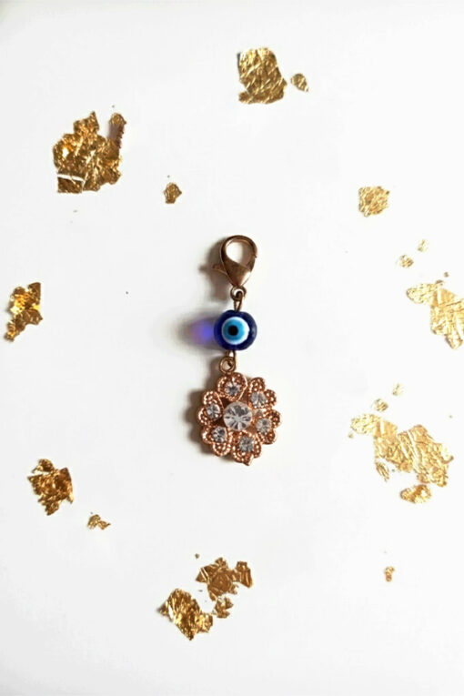 Rose Gold Evil Eye & Sparkling Clover Charm Clip