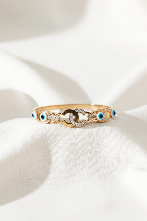 Golden Evil Eye Dual Band Bangle – Modern Charm & Protection
