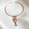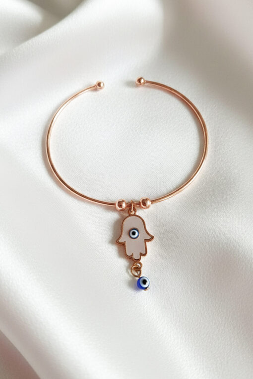 Rose Gold-Toned Adjustable Bangle with Hamsa Hand & Evil Eye Charm