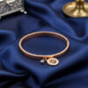 Discover the perfect blend of modern elegance and timeless symbolism with this stunning rose gold-tone bangle. The sleek, polished band provides a contemporary backdrop for two exquisite hanging charms. Beside it, a classic blue evil eye charm offers a touch of mystique and protection. This versatile piece is beautifully crafted to be worn alone as a sophisticated statement or stacked with other bracelets for a personalized, layered look, making it an ideal gift or a meaningful addition to your own collection.