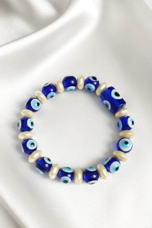 Tags: blue pearl jewelry, chic blue jewelry, classy beaded bracelet, designer style bracelet, elegant evil eye jewelry, everyday wear bracelet, evil eye fashion accessory, evil eye protection bracelet, good luck charm bracelet, luxury bead bracelet, modern evil eye bracelet, pearl tone bracelet, protective charm jewelry, refined bead bracelet, royal blue evil eye bracelet, spiritual protection jewelry, statement bracelet, stylish wrist accessory, timeless evil eye design, women’s fashion bracelet