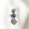 Silver Evil Eye Charm Clip with Interlocking Pave Crystal Hearts