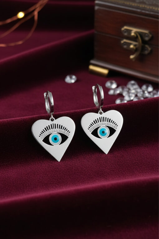 Silver Evil Eye Heart Earrings – Protection with Modern Elegance