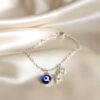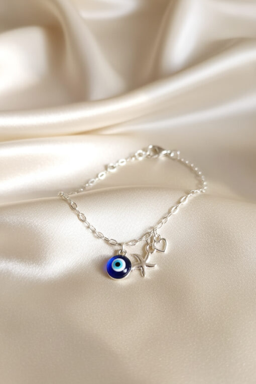 Silver Evil Eye & Starfish Charm Anklet for Beachside Elegance
