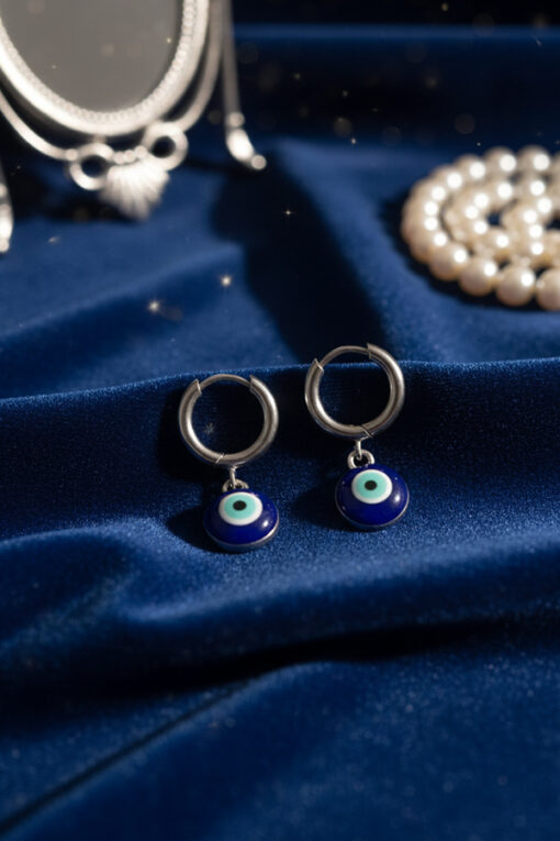 Silver Hoop Evil Eye Dangle Earrings – Timeless Charm & Spiritual Protection