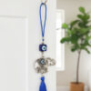 Bring wisdom, good fortune, and powerful protection to your space with this unique ornamental hanging. The centerpiece is a detailed, antique silver-toned elephant charm, a revered symbol of luck, strength, and prosperity. Hanging above the elephant is a classic square Evil Eye bead, while a vibrant deep blue tassel dangles from the bottom, adding movement and flair. The Evil Eye is a globally recognized talisman used to ward off negative energy and bring blessings. This beautiful and meaningful piece is perfect for hanging near an entrance, in a window, or as a decorative accent in your car. It makes an ideal gift for housewarmings or anyone seeking to infuse their space with luck, security, and charming, symbolic style.