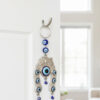 Traditional Turkish Glass Evil Eye Wall Hanging with Jute & Fish Charms
